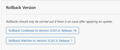 - You should have a section at the top of the page with options to roll back the code or Watcher.